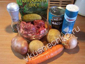 Когда картошка в супе сварится до мягкости, добавить в суповую кастрюлю консервированную фасоль и соленые огурцы. |