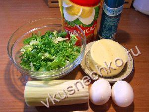 Листья салата тщательно промыть, крупно порвать руками или порезать. Яйца сварить вкрутую, очистить, мелко порубить. Сыр потереть на мелкой терке. Все сложить в миску, добавить подготовленный лук-порей. |