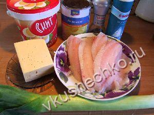 Рыба запеченная с ананасом и луком пореем