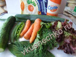 Морковь и огурцы вымыть со щеткой, потереть на терке. |