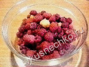 Ягоды малины перебрать, если малина покупная, то её надо промыть холодной водой. Собранную своими руками, аккуратно, без грязи и мусора, можно не мыть.