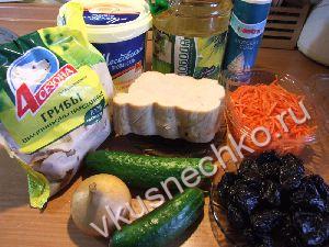 На морковь кладем весь чернослив. Смазать майонезом. |