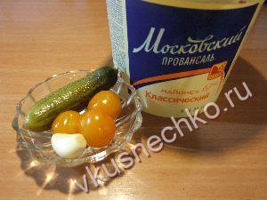 - Маринованные огурцы (корнишоны): 1 шт.