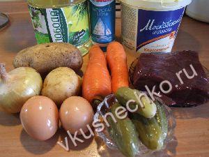 Яйца сварить вкрутую. Морковь и картофель сварить в шкурке, очистить. Остудить. |
