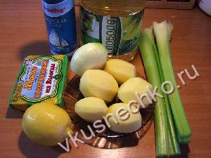 Картошку очистить, сполоснуть порезать большими кусками. Черещковый сельдерей хорошо промыть, крупно порезать. |