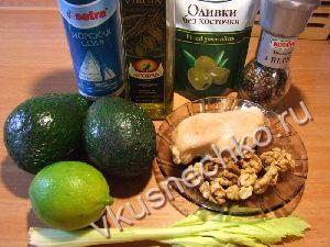 1 способ: Авокадо разрезать пополам, вынуть косточку, смазать срез соком лайма, чуть посолить. Начинкой из курицы, орехов и овощей заполнить выемку от косточки. |
