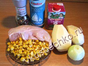 Добавить туда же кукурузу и варить до полной готовности всех продуктов, примерно 20 минут. За 5 минут до окончания варки посолить по вкусу. |