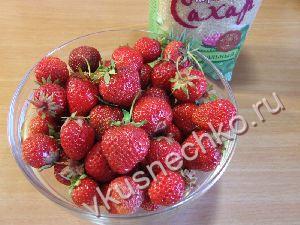 Ягоды садовой земляники тщательно промыть в холодной воде, дать воде стечь и удалить плодоножки. |