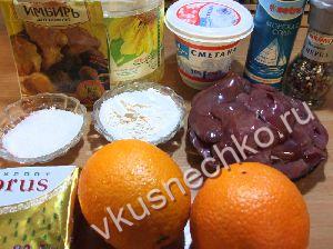 Перед подачей на каждую тарелку положить кружочки апельсина, а сверху на каждый кружок выложить печенку, посыпать свежемолотым перцем. Приятного аппетита! |
