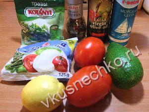 Салат из авокадо, помидоров и сыра Моцарелла