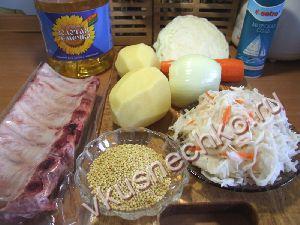 Когда ребрышки проварятся 30 минут, добавить к ним картошку, капусту и пшено, варить еще 20 минут. |