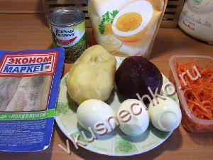 Один из вариантов селедки под шубой. Более острый и пряный, чем традиционный рецепт.