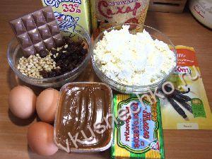 Добавить орехи, промытый и подсушенный изюм, небольшие кусочки шоколада, еще раз перемешать. |