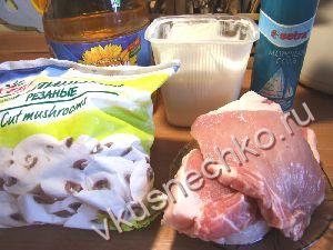 Свинина тушеная с грибами и сметаной