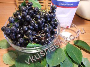 Черноплодку хорошо промыть в теплой воде, отделить от плодоножек. Листья вишни тщательно вымыть. |