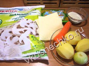 Картошку очистить, порезать кубиками, морковь потереть на терке. |