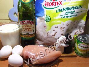 Омлет с курицей, грибами и зеленым горошком