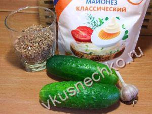 Соединить кашу с огурцами и чесноком, продавленным через пресс. |