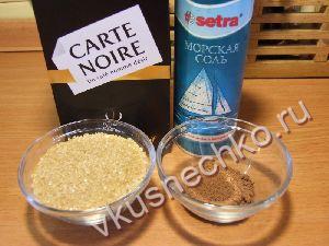 Засыпать в турку все ингредиенты. Количество молотого кофе можно увеличить или уменьшить по вкусу. |