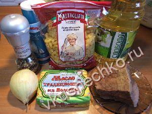 Макаронные изделия отварить до готовности в подсоленной воде. |