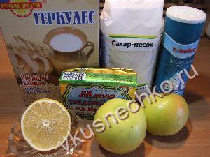 Сложить в кастрюлю лимонную цедру, нарезанные яблоки, овсяные хлопья, сахар. |
