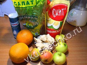 Яблоки и апельсины очистить от кожуры и семечек и нарезать кубиками. |